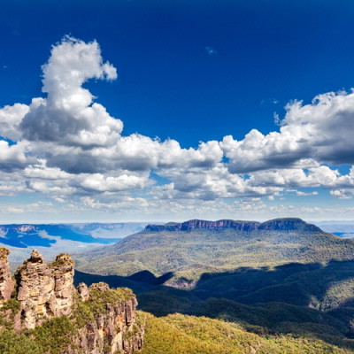 시드니에서 서쪽으로 약 60km 떨어진 곳에 위치한 산악 국립공원으로 유칼리나무로 뒤덮인 해발 1100m의 사암 고원인 블루마운틴은 특유의 푸른 빛과 가파른 계곡과 폭포, 기암 등이 빚어내는 아름다운 경관으로 2000년 유네스코 세계자연유산으로 등록된 시드니가 자랑하는 관광 명소 입니다.