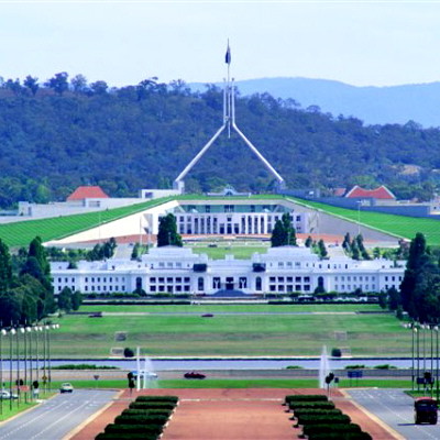 캔버라의 핵심인 국회의사당을 방문한다. 1988년도에 호주 건국 200주년 기념물로 미국의 유명한 건축가인 벌리 그리핀이 설계하여 만들어졌다. 주변에 건축가 이름으로 지어진 벌리 그리핀 호수와 함께 자리 잡고 있고 독특하고 장엄한 분위기를 내세우고 있다. 또 실제로 내부에 들어가 관람이 가능하고 역대 국회의장들의 사진과 초상화들도 배치 되어있다.