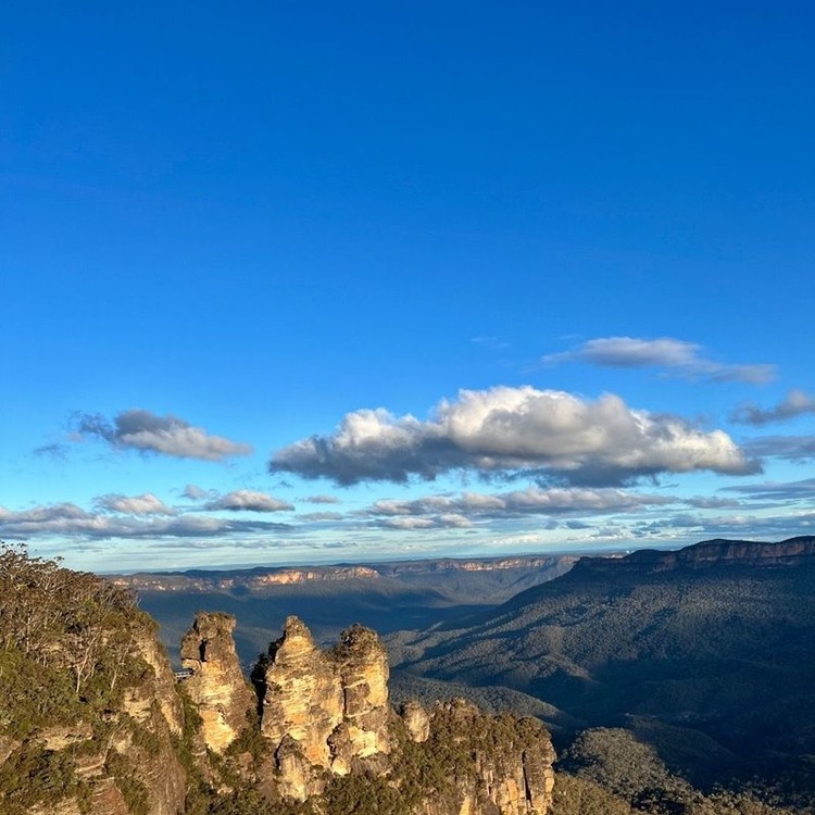블루마운틴은 시드니 시내에서 서쪽으로 약 두 시간 거리에 위치해 있으며, 맑은 날에는 멀리 시드니 시내 전경이 보이기도 합니다. 이 지역은 약 100만 헥타르에 이르는 광활한 유칼립투스 숲, 깎아지른 듯한 사암 절벽, 깊은 협곡과 웅장한 폭포 등으로 이루어져 있어 장대한 자연의 아름다움을 자랑합니다. 특히 유칼립투스 나무에서 뿜어져 나오는 미세한 기름 입자가 햇빛과 만나 수증기와 섞이면서 생기는 푸른 안개는, 이 지역 이름의 유래이자 블루마운틴만의 상징적인 풍경입니다. 그 뛰어난 생태적 가치와 자연경관으로 인해, 2000년 유네스코 세계자연유산으로 등재되었습니다.