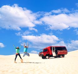 고퀄 4WD 자동차를 타고 사막(사구)를 질주 하여 모래 언덕에 도착합니다. 그리고 대망의 샌드보딩! 체력이 허용하는 만큼 몇 번이든 탈수 있습니다!